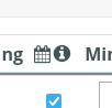 Bei einer Spalte sehen Sie ein Kalender-Symbol (Tooltip „Buchungsplan / sichtbar“):